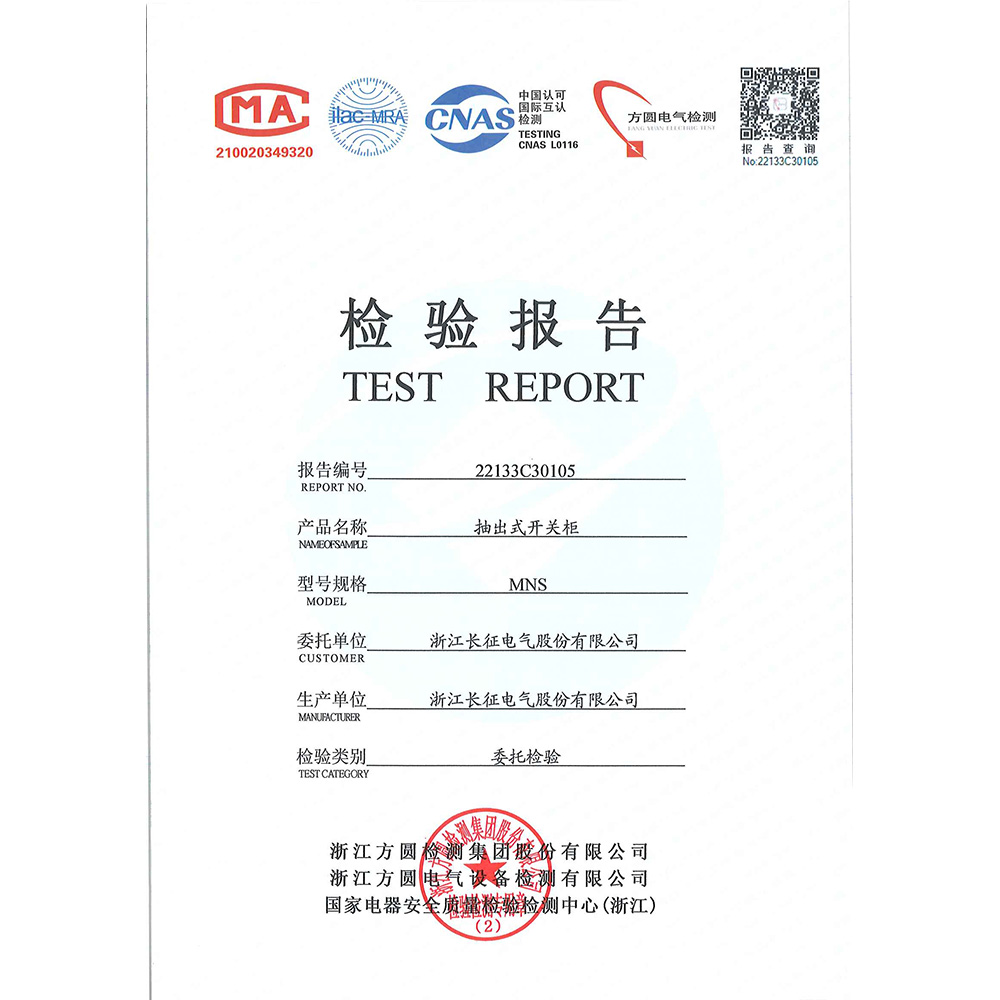 MNS抽出式開關(guān)柜 檢驗報告