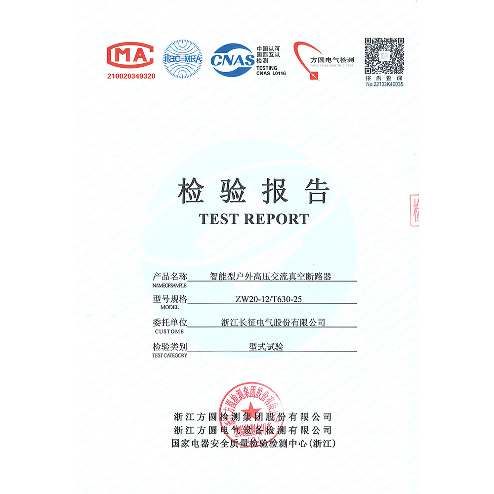ZW20-12/T630-25智能型戶外高壓交流真空斷路器 檢驗報告