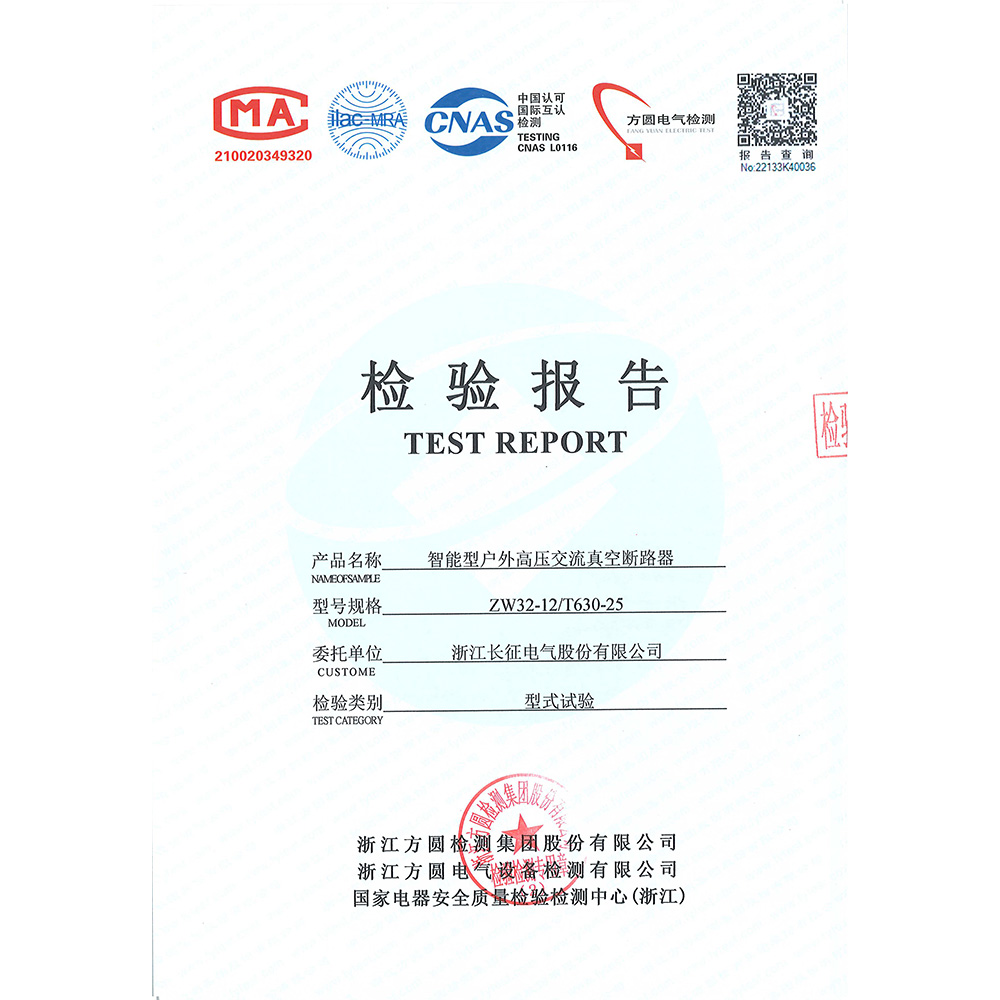 ZW32-12/T630-25智能型戶外高壓交流真空斷路器 檢驗報告