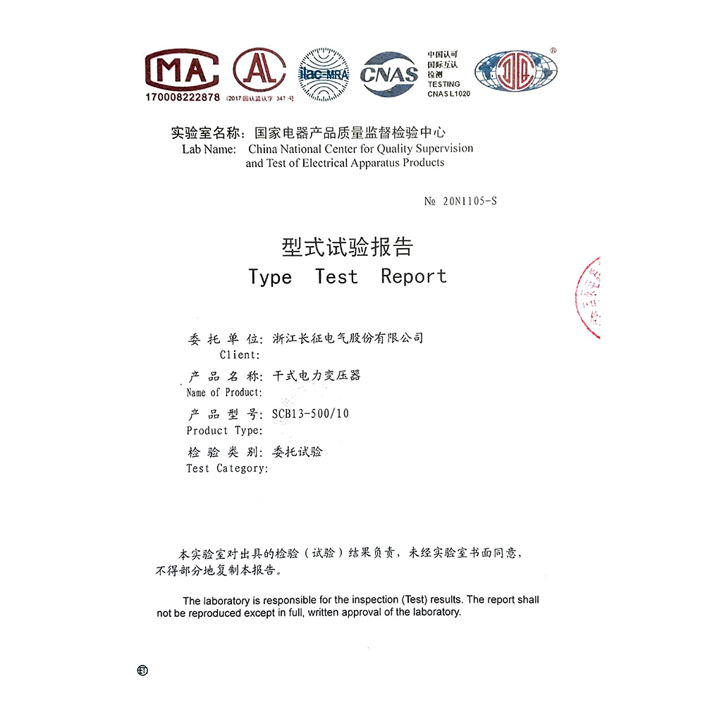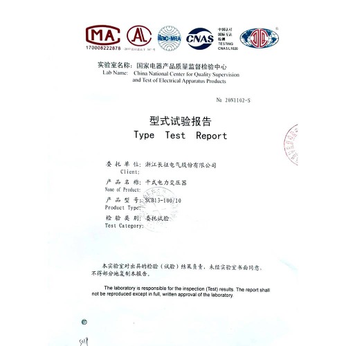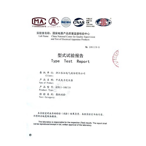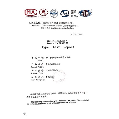 SCB11-500/10干式電力變壓器 型式試驗報告