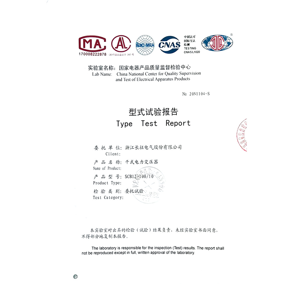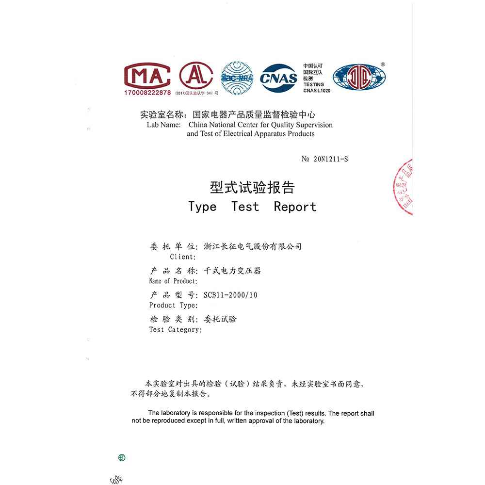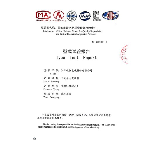 SCB11-2000-10干式電力變壓器 型式試驗報告