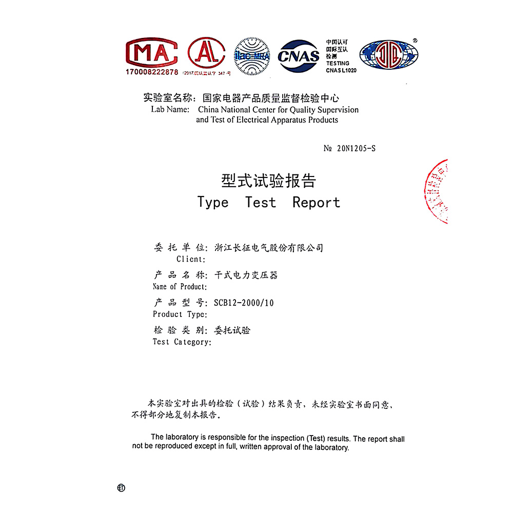 SCB12-2000/10干式電力變壓器 型式試驗報告