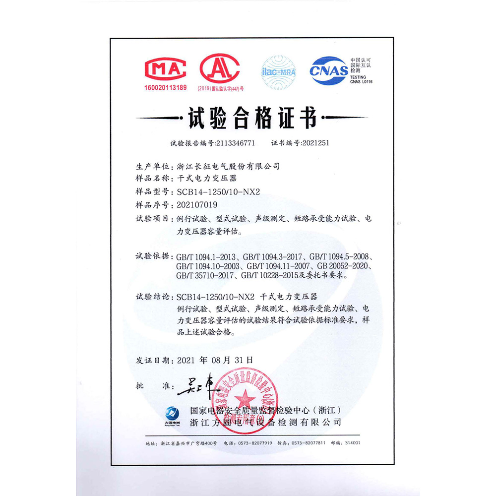 SCB14-1250/10-NX2干式電力變壓器 試驗合格證書
