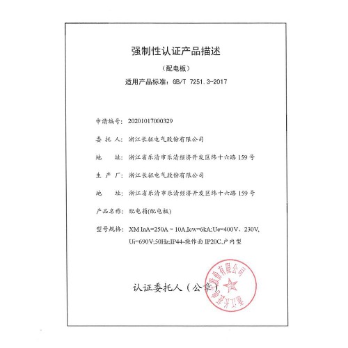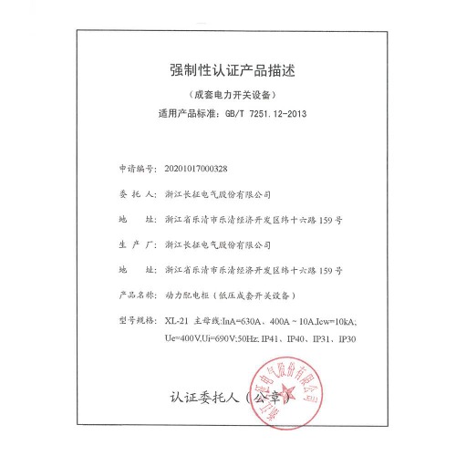 XL-21動力配電柜(低壓成套開關設備)強制性認證產品描述