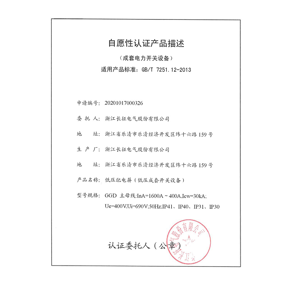 GGD低壓配電屏(低壓成套開關設備)自愿性認證產品描述