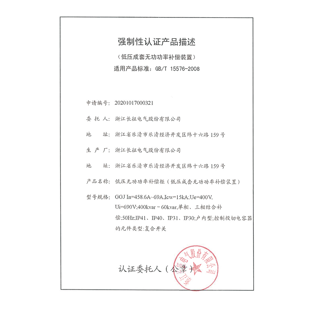 GGJ低壓無功功率補償柜(低壓成套無功功率補償裝置)強制性認證產品描述