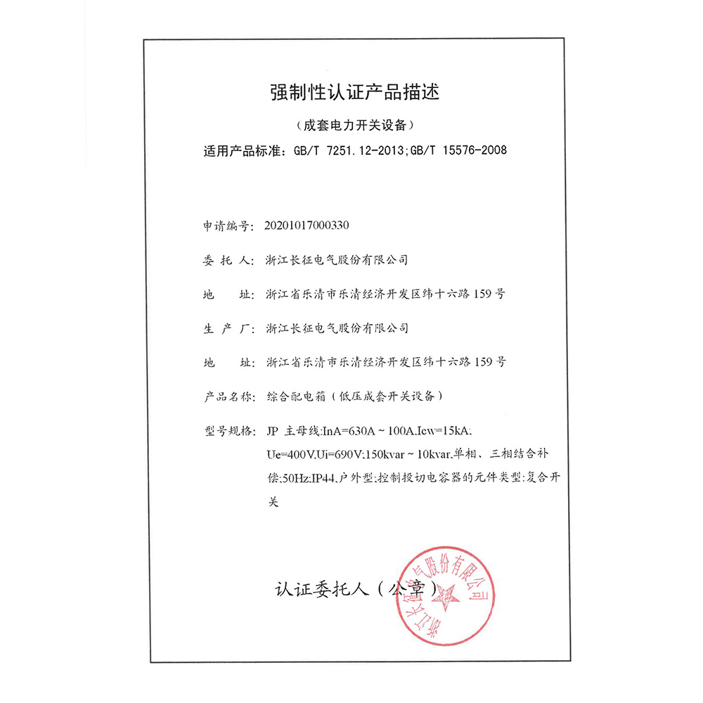 JP 630-100A綜合配電箱強 制性認證產(chǎn)品描述
