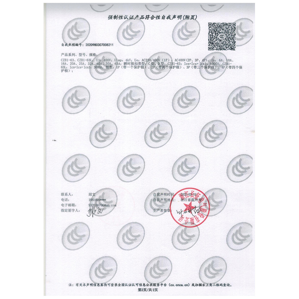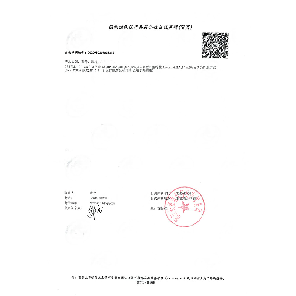 CZB3LE-40強制性認證產(chǎn)品符合性自我聲明(附頁)