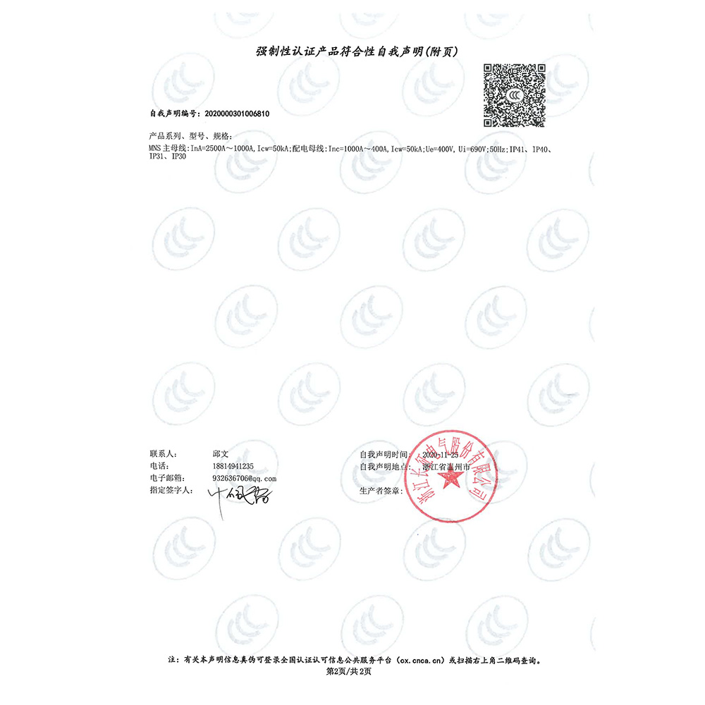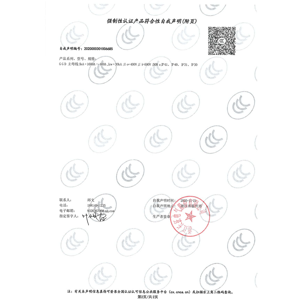 GGD強制性認證產(chǎn)品符合性自我聲明(附頁)
