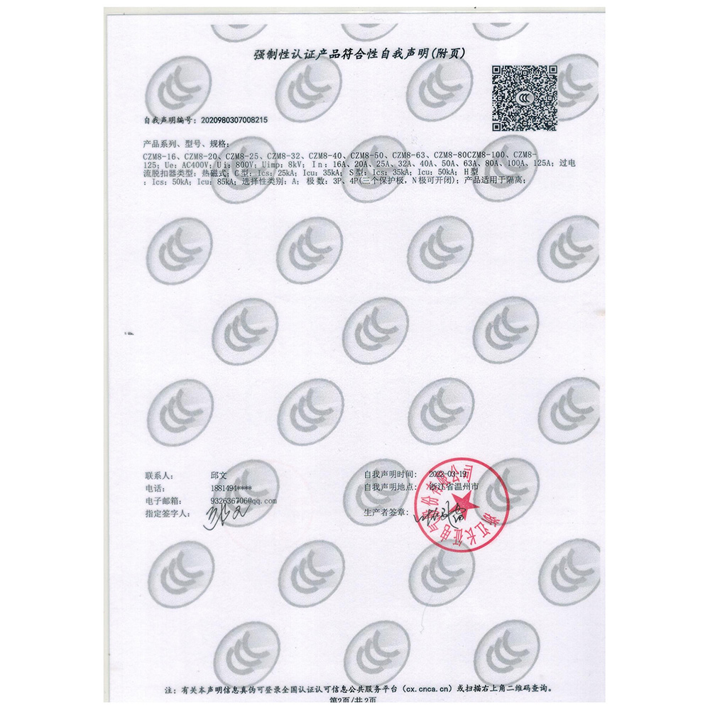 CZM8強制性認證產(chǎn)品符合性自我聲明(附頁)