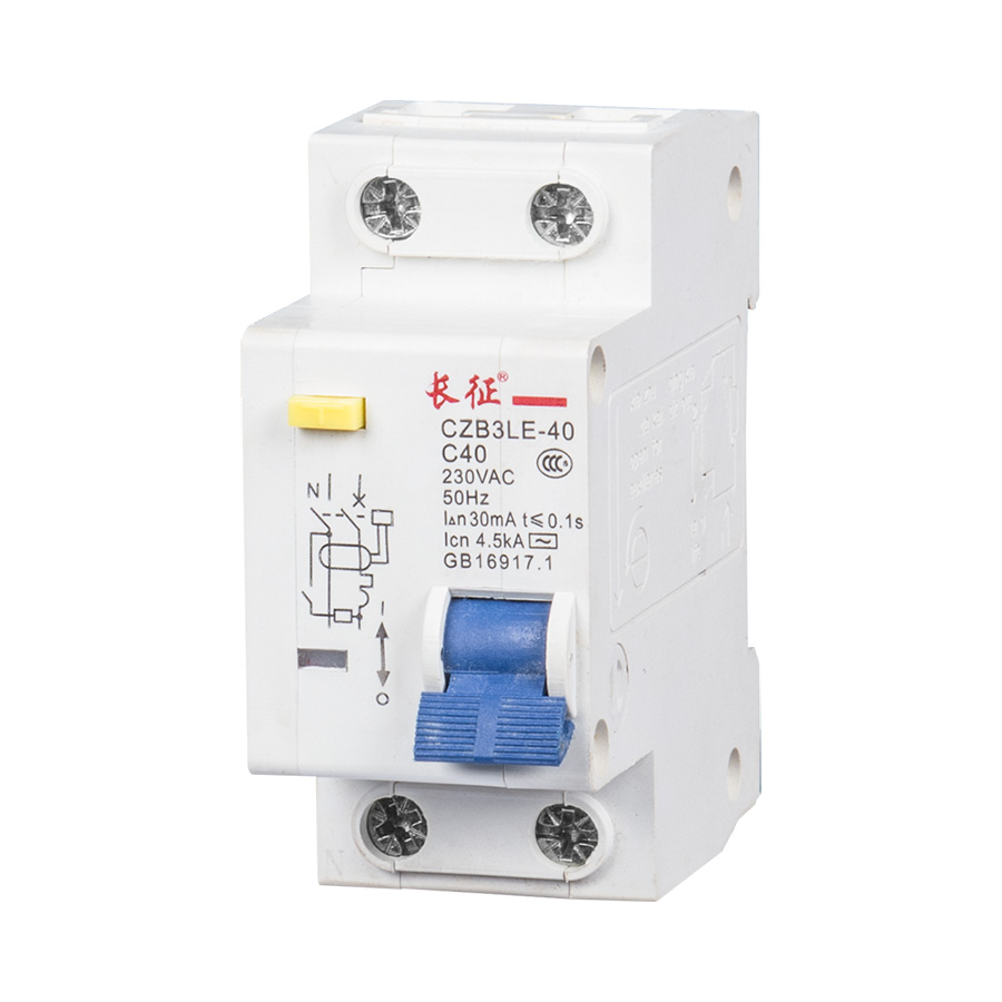 CZB3LE系列漏電斷路器主要適用于交流50Hz,額定電壓230V,額定電流至32A的電路中,作為人身觸電、設備漏電保護之用,并且有過載、短路保護功能, 也可以在正常情況下不頻繁地通斷電器裝置和照明線路,尤其適用于工業和商業照明配電系統。 當需要時可以增加過電壓保護功能,過壓保護額定值Uvo=280V。 符合標準:GB 16917.1、IEC 61009-1。產品型號說明